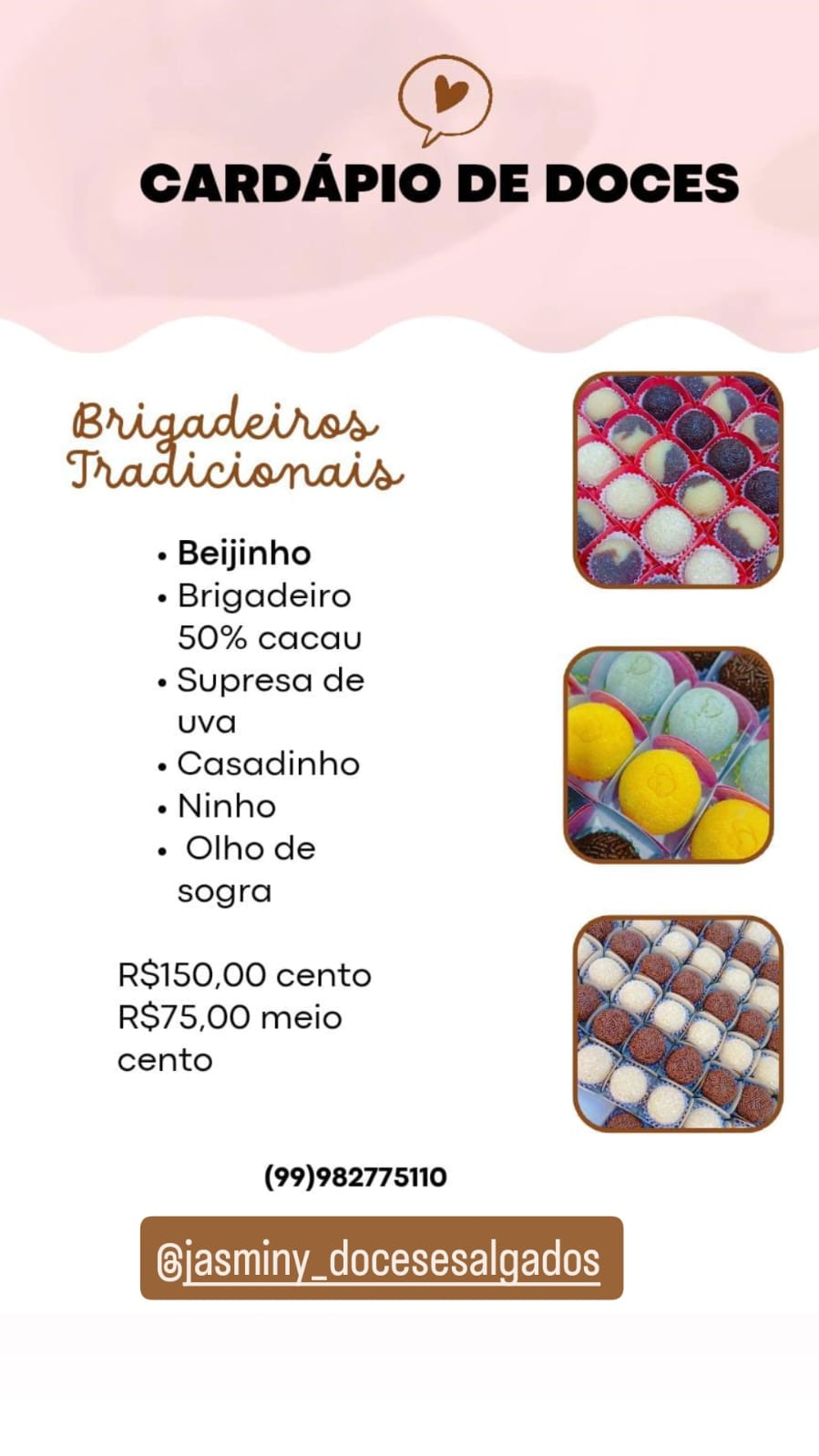 A Jasminy Doces e Salgados garante qualidade na entrega, além dos melhores preços com excelente atendimento. 💜🤍