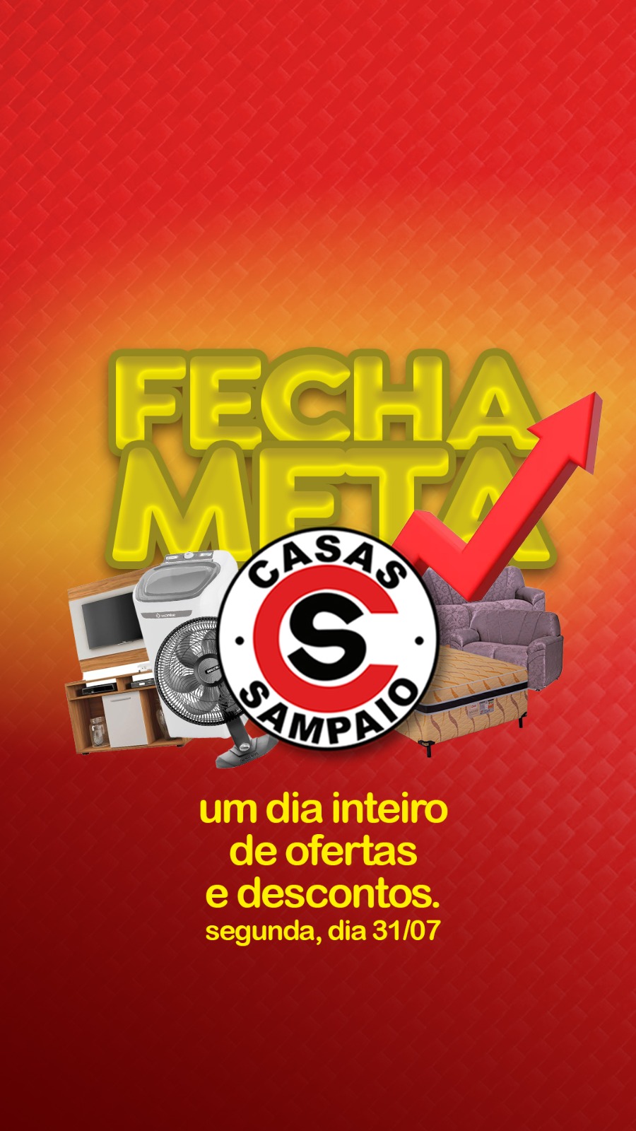 Publicidade Apenas nesta segunda-feira (31) super operação “fecha meta” nas Casas Sampaio. 31/07/2023 09:41