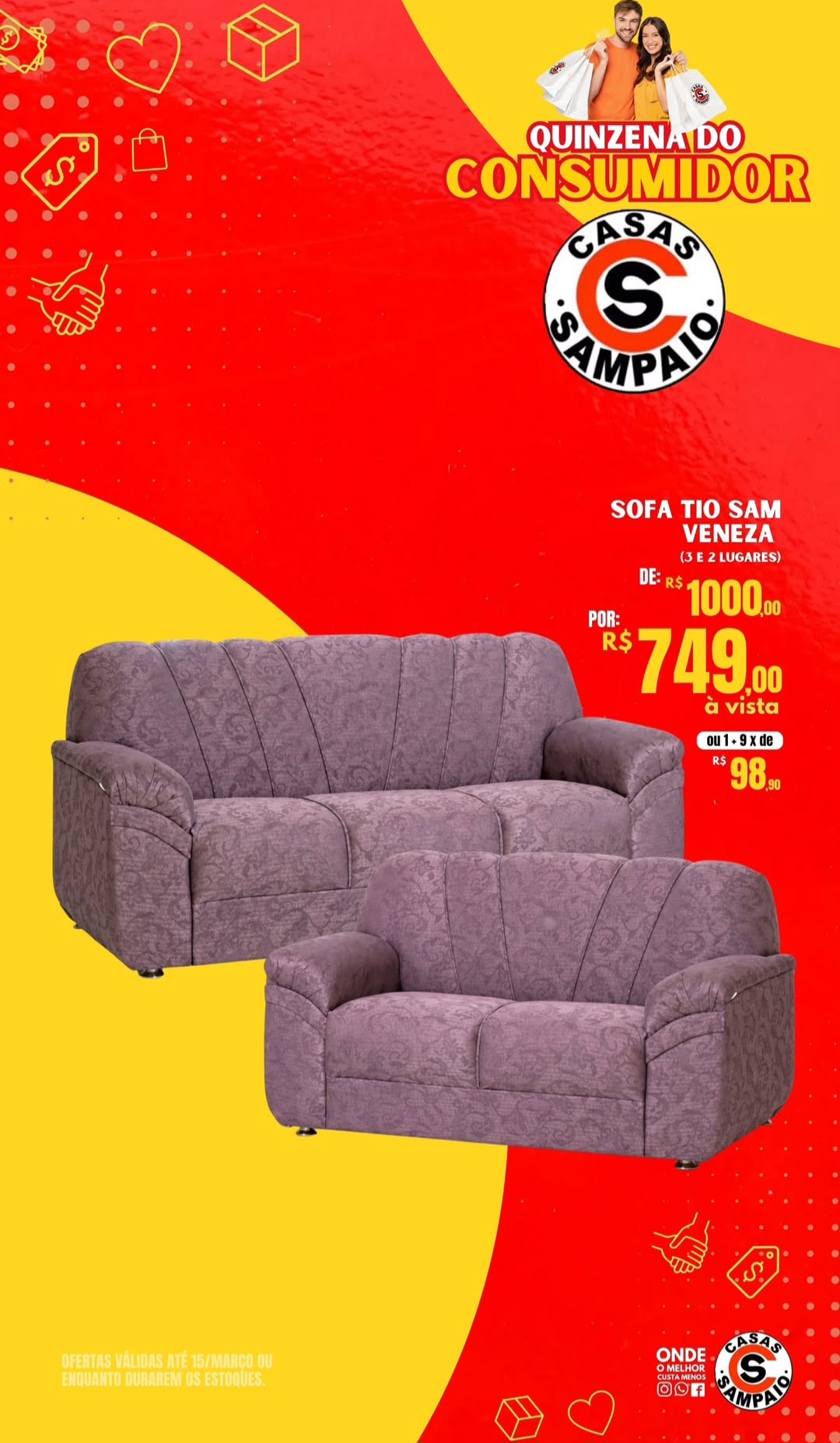 Durante a Quinzena de Ofertas das Casas Sampaio 🏢🏡 você encontra descontos especiais em móveis, eletrodomésticos e eletrônicos para renovar sua casa pagando menos.