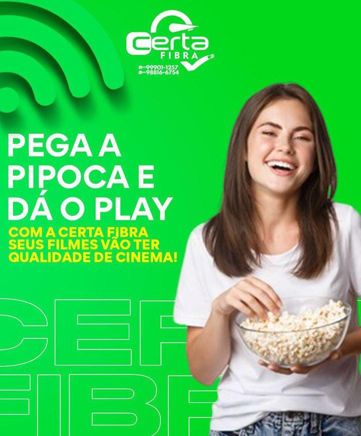 A Certa Fibra tem o que há de melhor em conexão de internet 100% de fibra óptica com toda a estabilidade, velocidade e segurança para você assistir aos seus filmes e sérios prediletas e fazer um maravilhoso cinema em casa sozinho, com a sua família ou amigos.